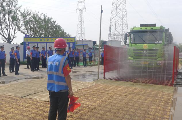 現(xiàn)場講解員從門口圍擋設(shè)置太陽能安全警示燈、揚(yáng)塵污染防治包抓公示牌、門口降塵措施、環(huán)境檢測系統(tǒng)、治污減霾承諾書、臨邊圍擋噴淋系統(tǒng)、霧泡、抑塵灑水車、車輛過水槽、全自動沖洗臺、門禁系統(tǒng),密目網(wǎng)遮蓋裸露場地、施工便道硬化、垃圾清掃、灑水揚(yáng)塵、渣土清運(yùn)車輛管理等管理環(huán)節(jié)一一進(jìn)行了介紹。由于舉措到位、管理到位,從而有效防止場內(nèi)揚(yáng)塵污染的產(chǎn)生,達(dá)到政府環(huán)保要求。