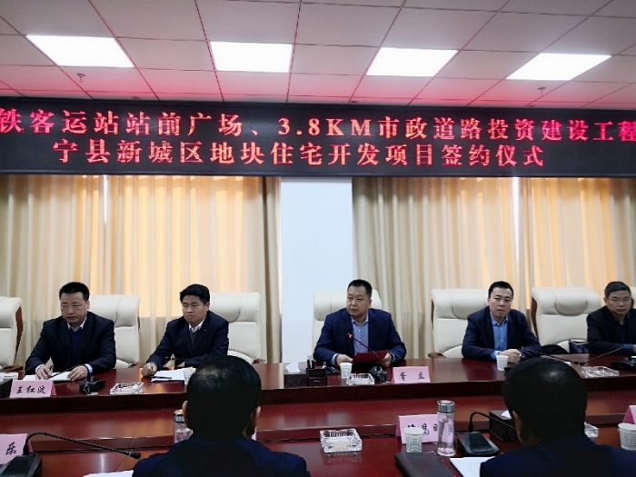2019年12月4日,寧縣高鐵客運(yùn)站站前廣場(chǎng)、3.8KM市政道路投資建設(shè)工程及寧縣新城區(qū)地塊住宅開(kāi)發(fā)項(xiàng)目簽約儀式在寧縣人民政府順利舉行。寧縣縣委書(shū)記侯昌明,縣委副書(shū)記、縣長(zhǎng)李鵬飛,縣委常委、常務(wù)副縣長(zhǎng)杜豐,縣委常委馬應(yīng)樂(lè),發(fā)改局、自然資源局、住建局、商務(wù)局等各部門(mén)主要負(fù)責(zé)人出席儀式。公司董事長(zhǎng)胥立、總經(jīng)理張小揚(yáng)、副總經(jīng)理李紅軍、副總經(jīng)理沈?yàn)槊瘛⒏笨偨?jīng)濟(jì)師王紅波出席簽約儀式,相關(guān)部門(mén)經(jīng)理和工作人員隨行。