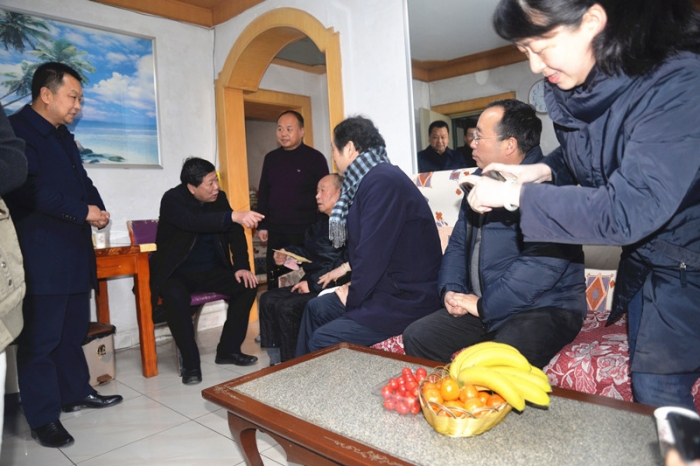 1月19日,陜西省住房和城鄉(xiāng)建設(shè)廳副廳長茹廣生、建筑市場管理辦公室主任張丹、人事處副處長任曉敏,市住建局副局長霍兆寧,市勞保統(tǒng)籌處主任李向文一行來公司慰問退休職工尚安民。公司董事長胥立、副總經(jīng)理沈為民、副總會計師嚴(yán)海軍陪同。
