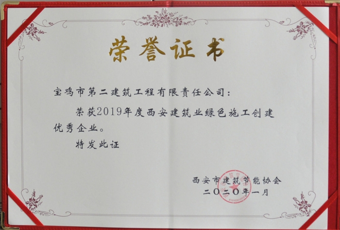近日,從西安市建筑節(jié)能協(xié)會傳來喜訊,公司榮獲“2019年度西安建筑業(yè)綠色施工創(chuàng)建優(yōu)秀企業(yè)”稱號,公司董事長胥立榮獲“2019年度西安市建筑節(jié)能行業(yè)優(yōu)秀企業(yè)家”稱號。